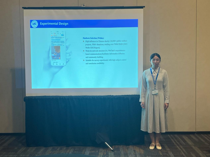 在11月21日舉行的“Governance, Leadership and Management”專題分論壇上,博士生趙偉英匯報了題為“The Chinese Paradigm of Internet Philanthropy: A Platform Responsibility-fulfillment Perspective”的研究成果。該研究從平臺履責(zé)視角出發(fā),基于責(zé)任解構(gòu)及制度設(shè)計探討了中國互聯(lián)網(wǎng)慈善的治理樣本何以形成。