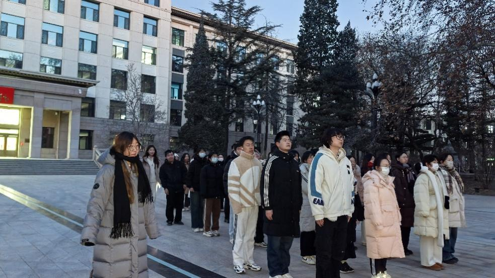 12月24日早晨,241111與231111支部的同學(xué)們齊聚主樓廣場(chǎng),伴著雄壯的國(guó)歌,五星紅旗冉冉升起,全體同學(xué)肅穆行禮,心中激蕩著愛國(guó)熱忱與奮進(jìn)豪情。