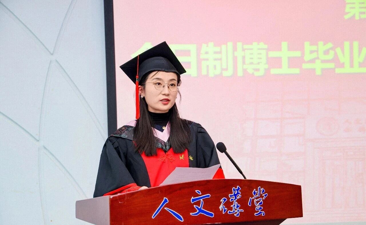 全日制博士畢業(yè)生代表劉建新同學(xué)分享了自己的讀博感悟,以質(zhì)樸的語言,講述了科研路上的迷茫與堅(jiān)守、與人相處的真誠與包容,以及面對困境時(shí)的樂觀與成長。她坦言,博士生涯教會(huì)她的不僅是學(xué)術(shù)能力,更有直面挑戰(zhàn)的勇氣與從容處世的智慧,這份收獲將伴隨她未來的每一步前行。