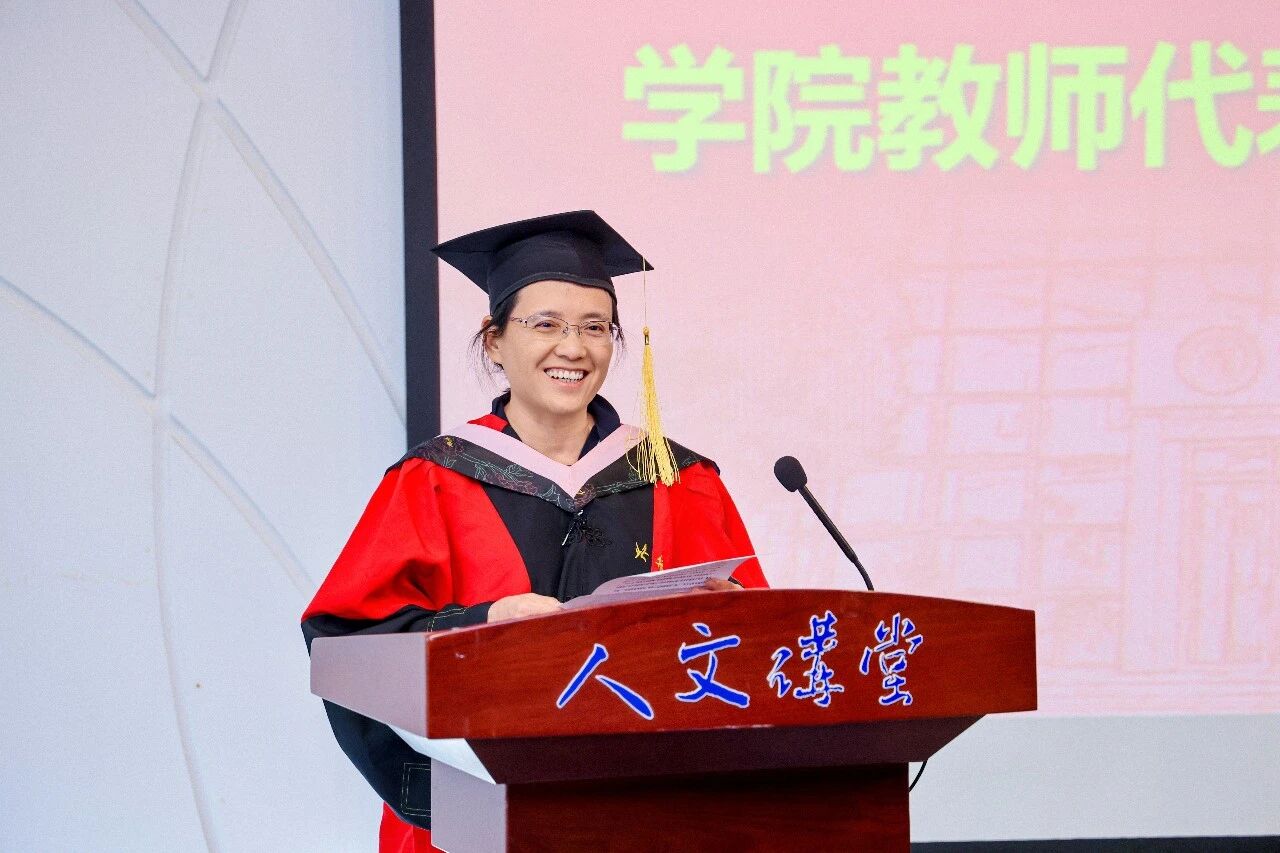 學(xué)院教師代表、副院長涂曉芳教授為畢業(yè)生們送上臨別贈(zèng)言。她溫情回望了與同學(xué)們共度的美好時(shí)光,課堂上的思想碰撞、賽事中的并肩作戰(zhàn)、論文打磨時(shí)的反復(fù)推敲,一幕幕珍貴畫面歷歷在目。她叮囑同學(xué)們,未來無論身處何種崗位,都要堅(jiān)守北航精神,以堅(jiān)韌的品格、足夠的耐心和堅(jiān)定的定力面對人生風(fēng)雨;要牢記學(xué)術(shù)初心,將所學(xué)知識(shí)轉(zhuǎn)化為實(shí)踐動(dòng)能,把論文寫在祖國大地上,在服務(wù)社會(huì)中實(shí)現(xiàn)人生價(jià)值。祝愿同學(xué)們事業(yè)騰飛,生活幸福,為北航藍(lán)增色,為中國紅添彩。
