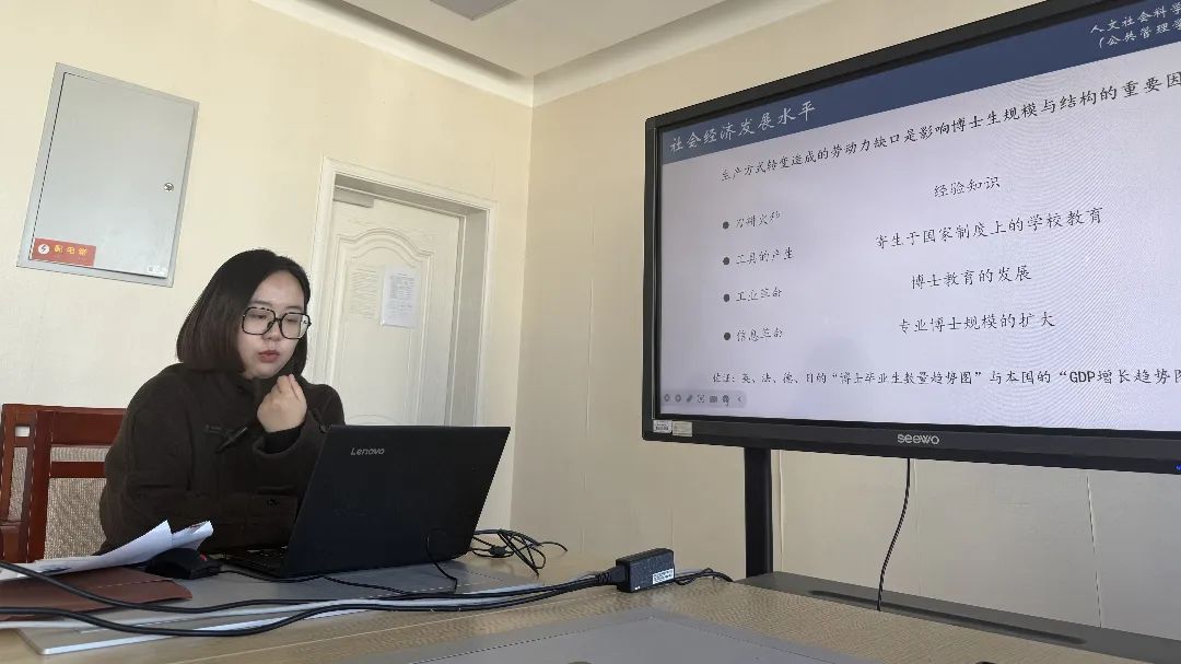 12月5日,人文公管學(xué)院第19期博士研究生學(xué)術(shù)沙龍?jiān)诒焙焦补芾韺W(xué)院511舉辦。本期沙龍由學(xué)院教育經(jīng)濟(jì)與管理專(zhuān)業(yè)博士生劉玉贇、行政管理專(zhuān)業(yè)博士生農(nóng)靜雅進(jìn)行學(xué)術(shù)分享,包艷華副教授、張路蓬副教授擔(dān)任點(diǎn)評(píng)嘉賓,專(zhuān)職輔導(dǎo)員夏文靜、張同玉以及來(lái)自不同專(zhuān)業(yè)的在讀研究生參加。
