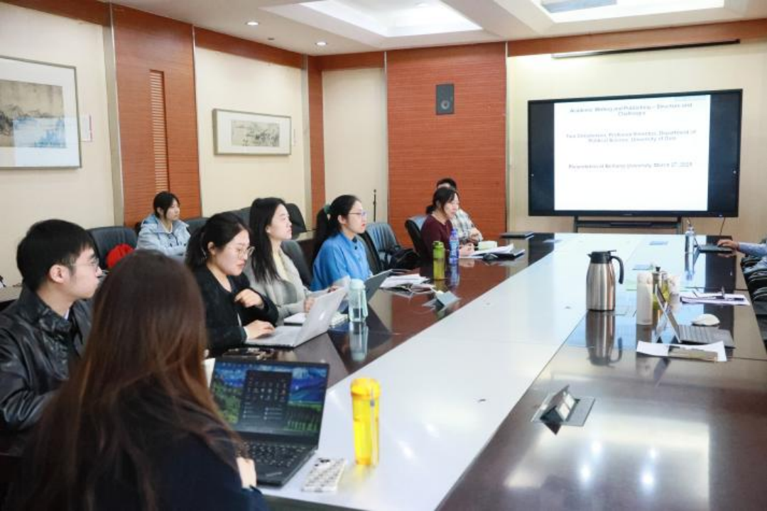 在高水平國(guó)際英文期刊論文工作坊中,Tom Christensen教授為我院師生提供了論文撰寫(xiě)與發(fā)表的專(zhuān)業(yè)指導(dǎo)。活動(dòng)圍繞學(xué)術(shù)寫(xiě)作范式、案例選擇、成果展示等核心議題展開(kāi)深度研討,助力提升學(xué)院師生國(guó)際發(fā)表能力。