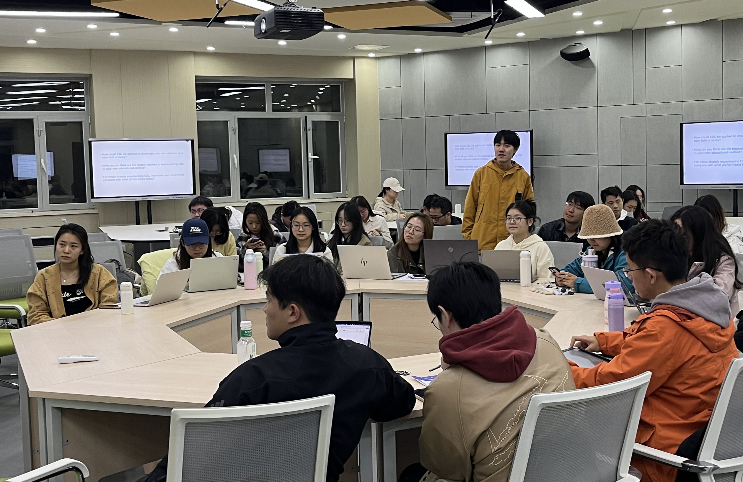 在隨后的研討環(huán)節(jié),主持人結(jié)合Membrillo教授的分享,引導(dǎo)現(xiàn)場學(xué)生開展分組討論,聚焦三個核心問題深化對CBL的認(rèn)知:“如何將CBL應(yīng)用到自身專業(yè)領(lǐng)域的挑戰(zhàn)中?”“在當(dāng)前教育環(huán)境下,實(shí)施CBL的挑戰(zhàn)是什么?”“參與過CBL教育的同學(xué),如何看待本次講座內(nèi)容與自身經(jīng)歷的差異?"