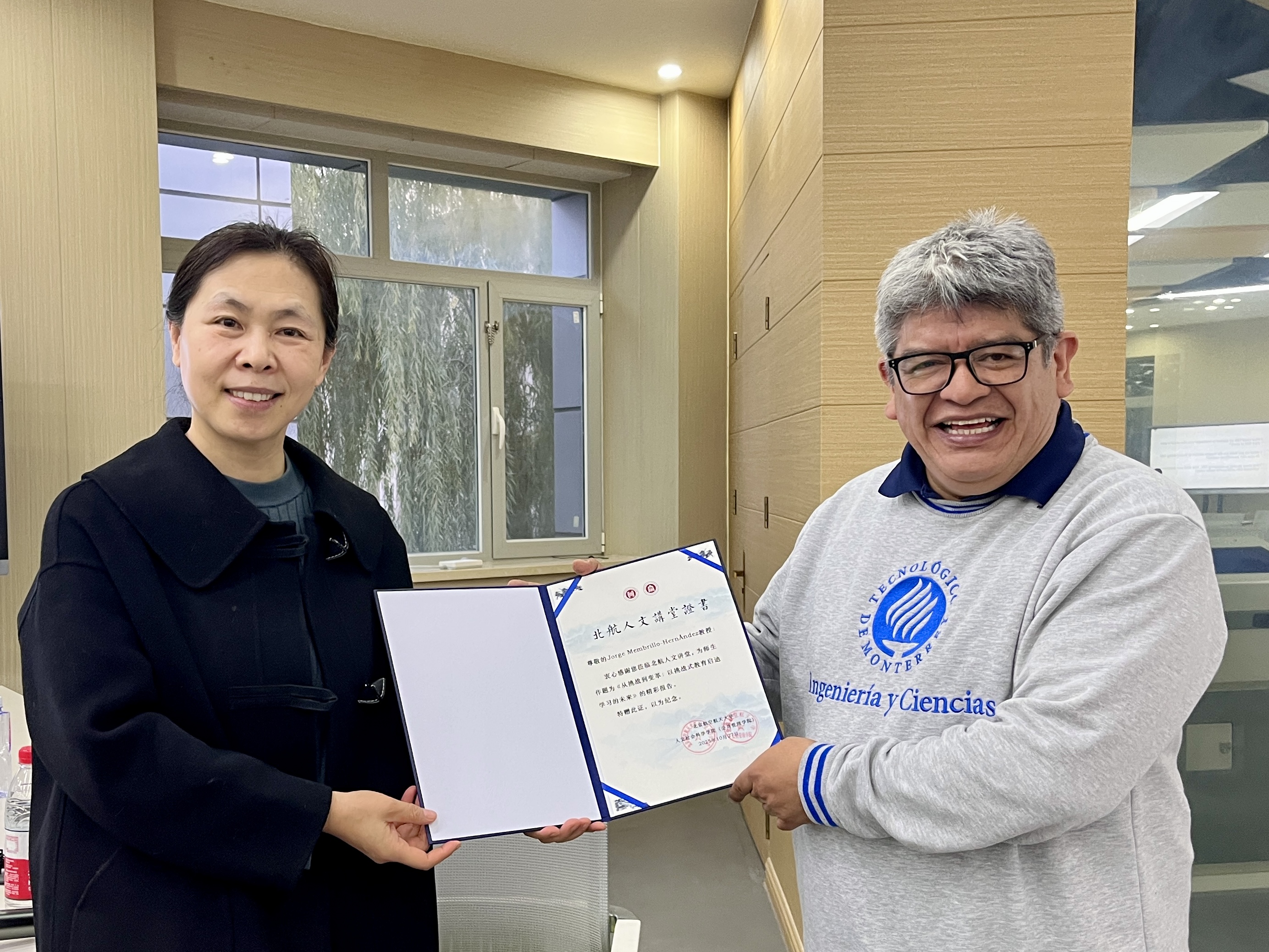 講座結(jié)束高等教育研究所副所長任秀華副教授為Membrillo教授授予了“人文講堂”證書。