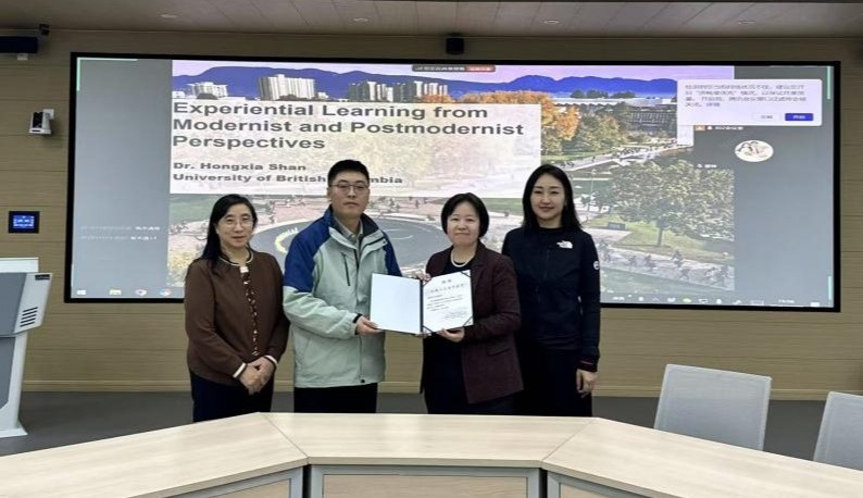 最后,人文公管學(xué)院院長(zhǎng)助理劉賢偉副教授為單紅霞教授頒發(fā)了“人文講堂”證書(shū),單老師與本院長(zhǎng)期合作,已聯(lián)合培養(yǎng)博士生、共同發(fā)表SCI論文,未來(lái)將會(huì)繼續(xù)合作,共同推進(jìn)中加研究生教育學(xué)的研究與交流。