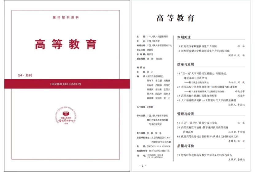 近日,北京航空航天大學(xué)人文社會(huì)科學(xué)學(xué)院(公共管理學(xué)院)馬永紅教授、碩士畢業(yè)生劉捷撰寫(xiě)的《“雙一流”大學(xué)可持續(xù)發(fā)展能力:?jiǎn)栴}緣起、理論基礎(chǔ)與層次結(jié)構(gòu)——基于概念結(jié)構(gòu)分析法》(原刊發(fā)于《教育發(fā)展研究》2024年第5期),被《人大復(fù)印報(bào)刊資料·高等教育》2024年第8期全文轉(zhuǎn)載。以下為文章全文。