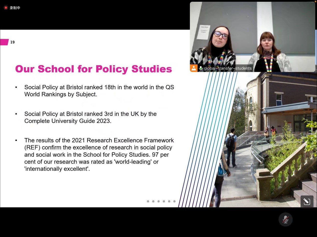 在線上宣講會之前,我院已經(jīng)與布里斯托大學(xué)政策研究學(xué)院就簽訂院級合作協(xié)議,建立學(xué)院級國際合作平臺,建立穩(wěn)定的交流與合作關(guān)系,共同組辦有影響力的學(xué)術(shù)會議、聯(lián)合科研項目,擴大學(xué)生交流,以及學(xué)分互換協(xié)議等方面進行了多次溝通和協(xié)商。
