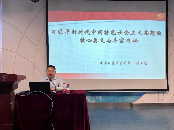 張玉寶老師通過(guò)對(duì)習(xí)近平新時(shí)代中國(guó)特色社會(huì)主義思想的時(shí)代背景、主要內(nèi)容以及實(shí)踐要求進(jìn)行系統(tǒng)分析,全面梳理了習(xí)近平新時(shí)代中國(guó)特色社會(huì)主義思想的學(xué)理框架,闡釋其原創(chuàng)性貢獻(xiàn),并著重從堅(jiān)持和加強(qiáng)黨的全面領(lǐng)導(dǎo)、推進(jìn)全面從嚴(yán)治黨等方面強(qiáng)調(diào)學(xué)習(xí)貫徹習(xí)近平新時(shí)代中國(guó)特色社會(huì)主義思想的實(shí)踐要求。他強(qiáng)調(diào),要堅(jiān)持不懈用習(xí)近平新時(shí)代中國(guó)特色社會(huì)主義思想凝心鑄魂,弘揚(yáng)偉大建黨精神、提高黨性修養(yǎng)。全面建設(shè)社會(huì)主義現(xiàn)代化國(guó)家、全面推進(jìn)中華民族偉大復(fù)興關(guān)鍵在黨,作為黨員要自覺(jué)融入新時(shí)代黨的建設(shè)新的偉大工程。